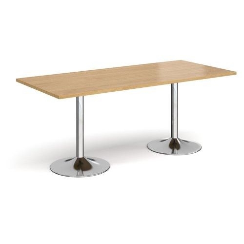 Genoa rectangular dining table with chrome trumpet base 1800mm x 800mm - oak
