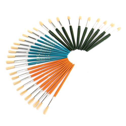 Hog Hair Round Short Paint Brushes Assorted (Pack of 30) FBASS