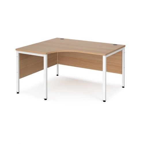 Maestro 25 left hand ergonomic desk 1400mm wide - white bench leg frame, beech top
