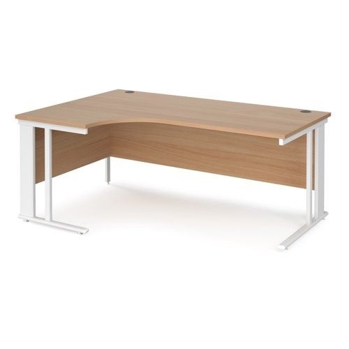 Maestro 25 left hand ergonomic desk 1800mm wide - white cable managed leg frame, beech top