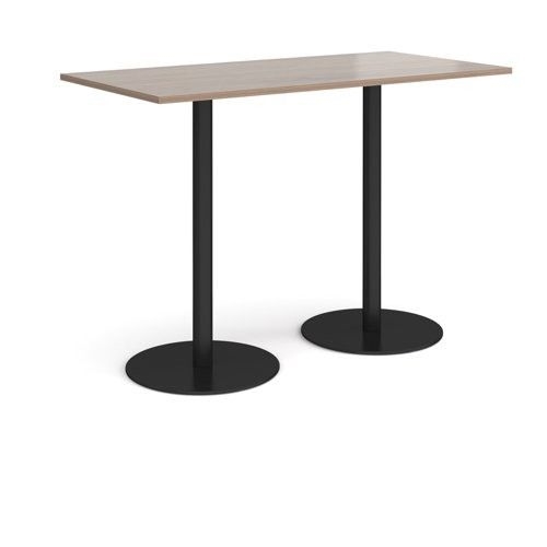 Monza rectangular poseur table with flat round black bases 1600mm x 800mm - barcelona walnut