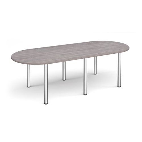 Radial end meeting table 2400mm x 1000mm with 6 chrome radial legs - grey oak