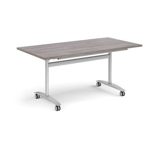 Rectangular deluxe fliptop meeting table with silver frame 1600mm x 800mm - grey oak