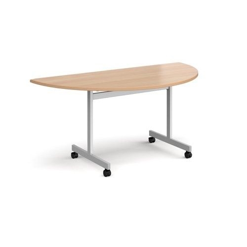 Semi circular fliptop meeting table with silver frame 1600mm x 800mm - beech