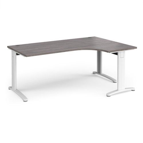 TR10 deluxe right hand ergonomic desk 1800mm - white frame, grey oak top