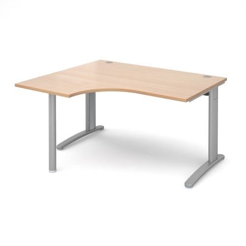 TR10 left hand ergonomic desk 1400mm - silver frame, beech top